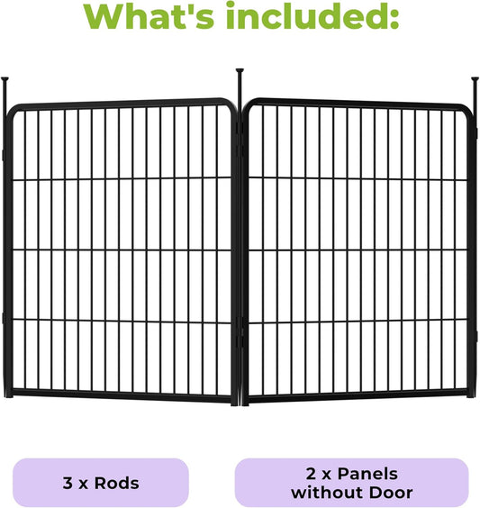 Doorless Garden Fence 24 in(H) x 3.7 ft(L) 2 Panels, Heavy Duty Metal Animal Barrier Fence, No Dig Fence for Dogs, Rabbit Fence for Garden, Black