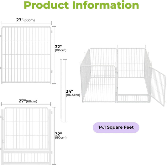 Doorless Garden Fence 32 in(H) x 8.9 ft(L) 4 Panels, Heavy Duty Metal Animal Barrier Fence, No Dig Fence for Dogs, Rabbit Fence for Garden, White