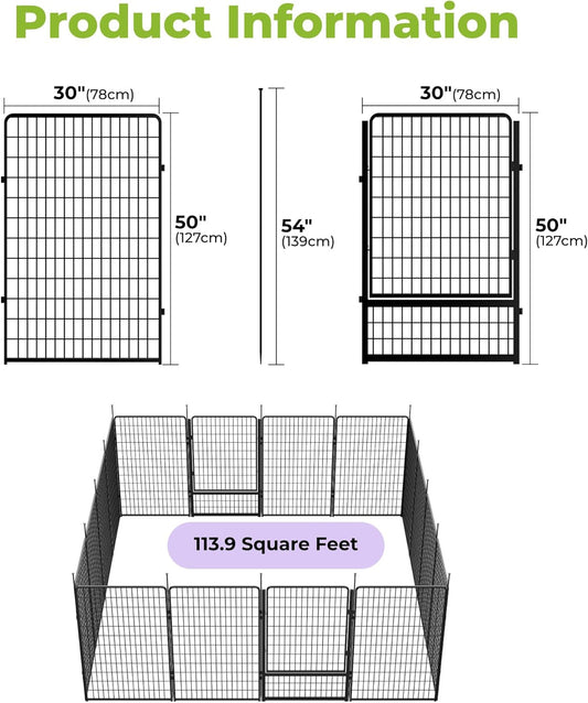 Decorative Garden Fence with Gate 50 in(H) x 40.9 ft(L) 16 Panels, Heavy Duty Metal Animal Barrier Fence for Yard, Flower Bed Fencing, Garden Border Fence, Easy Set Up, Black