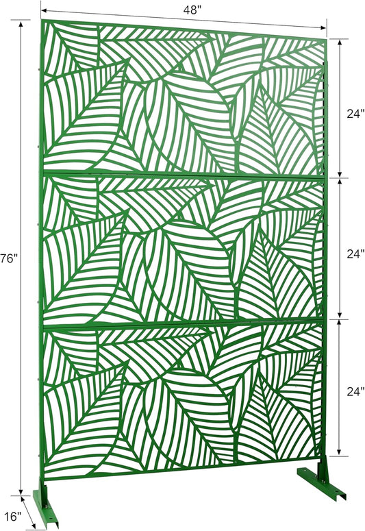 Metal Privacy Screens 76" H Outdoor Privacy Screens Panels Outdoor and Indoor Leaf Pattern Divider Freestanding Decorative Privacy Fence Panels for Balcony Patio Garden, Green