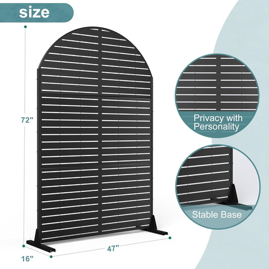 FENCY Metal Privacy Screen with Stand 72" H×47" W Outdoor Freestanding Privacy Panels, Arched Outdoor Privacy Screen for Deck Patio Balcony(Black-Louvered)