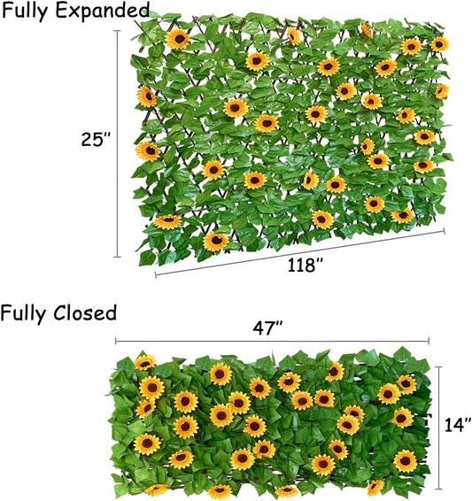 Expandable Fence Privacy Screen for Balcony Patio Outdoor,Decorative Faux Ivy Fencing Panel,Artificial Hedges (Single Sided Leaves) (1, Sunflowers)