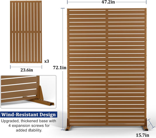 FENCY Outdoor Privacy Screen, 72" H×47" W Metal Privacy Screen, Outdoor Freestanding Privacy Screen & Panels for Deck Patio Balcony(Brown-Louvered)