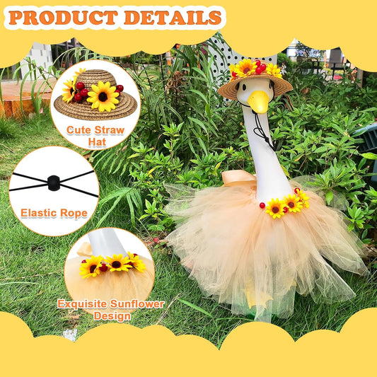 Large White Goose Statues Cygnus, Cute Big Bird Decor Garden Sculpture with Sunflower Outfits and Hat Duck Figurine Indoor Outdoor Porch Backyard Pool Lawn Ornaments 19’’ Birthday Holiday Decorations