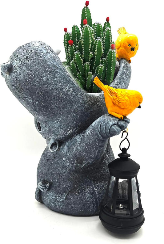 Large Hippo Solar Garden Outdoor Statues Hippo Planter Flowers Vase for Fresh/Artificial Hippo Figurine Garden Statue with Solar Lantern for Patio Balcony Yard Lawn Hippo Gifts Housewarming Gift