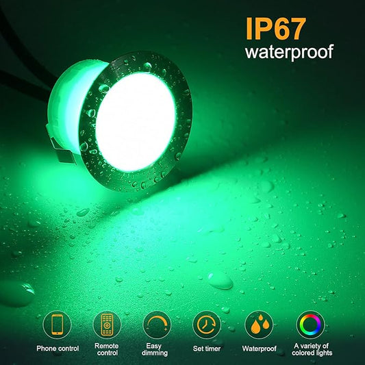 Smart LED Deck Light Kits - 20 Pack of 1.77" Low Voltage Recessed RGBW Deck Lights IP67 Waterproof for Outdoor Landscape Lighting on Steps, Floors & Pathways, Compatible with Alexa & Google Assistant