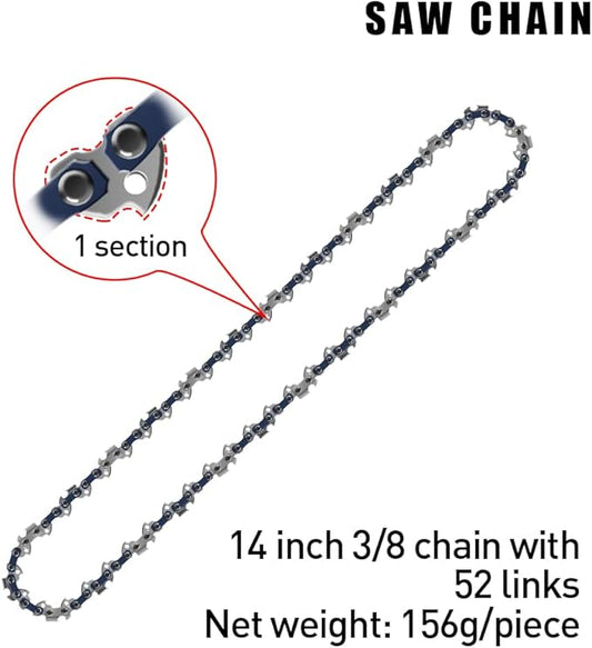14-Inch Chainsaw Chain 4-Pack – 3/8" LP Pitch, .050" Gauge, 52 Drive Links, Semi-Chisel Replacement Chain for 14" Electric Mini Chainsaw and Pole Pruner