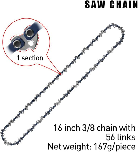 16-Inch Chainsaw Chain 4-Pack – 3/8" LP Pitch, .050" Gauge, 56 Drive Links, Semi-Chisel Replacement Chain for 16" Electric Mini Chainsaw and Pole Pruner