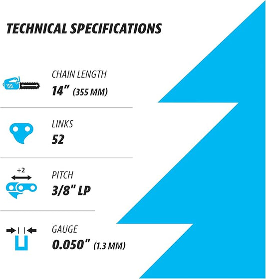14 Inch Chainsaw Chain 3/8" LP Pitch, 050" Gauge, 52 Drive Links, German Steel, fits Husqvarna 120i, 135, Echo CS-310, Ryobi RY3714, Makita XCU11Z, EGO, WORX, POULAN and more
