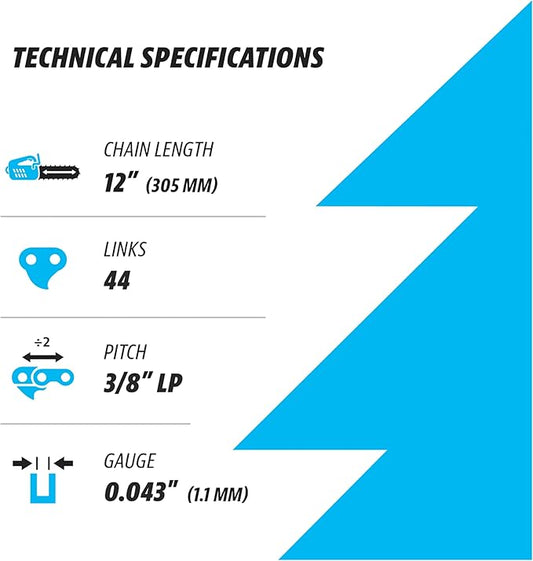 Dewalt Chainsaw Chain 12 Inch 3/8" LP Pitch, 043" Gauge, 45 Drive Links, German Steel, Low Kickback fits DEWALT: DCCS620B, DCCS620P1, DWO1DT612, HUSQVARNA, ECHO, MAKITA and more (3 Chains)