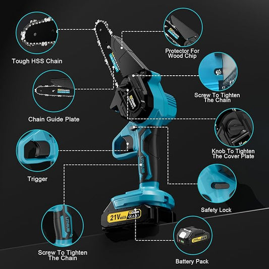 Mini Chainsaw Cordless 6 Inch, Brushless Motor Electric Saw - 2x2Ah Batteries, 2025 Upgraded, Safety Lock, Portable Handheld for Tree Trimming, Wood Cutting, Camping/DIY, Gift for Dad Husband