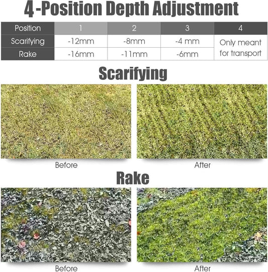 16‑Inch 15Amp 2‑in‑1 Electric Dethatcher & Scarifier with 5‑Position Depth Adjustment, 12 Gallon Removable Grass Collection Bag, Foldable Design, Lawn Thatcher for Yard Lawn Garden Care