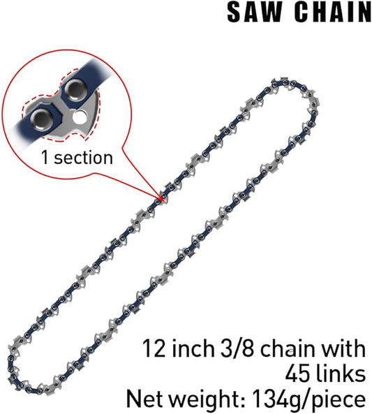 12-Inch Chainsaw Chain 4-Pack β 3/8" LP Pitch, .050" Gauge, 45 Drive Links, Semi-Chisel Replacement Chain for 12" Electric Mini Chainsaw and Pole Pruner