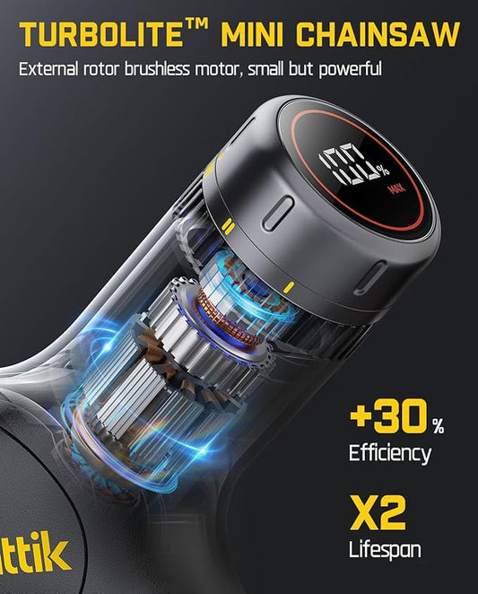 Fanttik TurboLite W10 APEX External Rotor Brushless Motor Mini Chainsaw Cordless with 3 Speed Adjustment & Fanttik W101 4-inch Chain