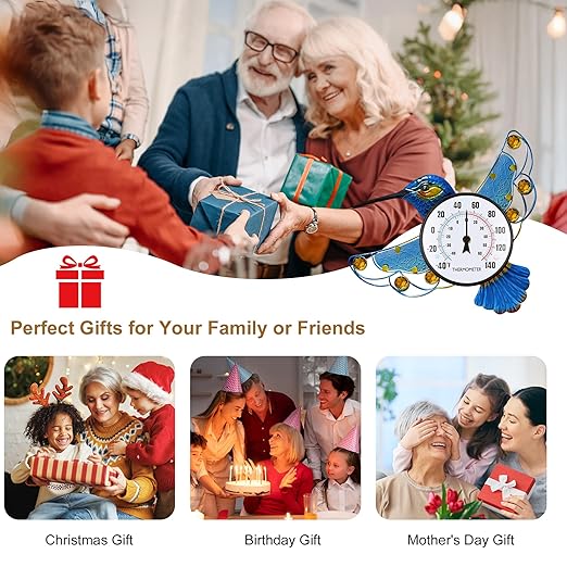 Indoor Outdoor Thermometer, Hummingbird Wall-Mounted Outdoor Thermometers Waterproof Decorative for Patio, Garden, Yard, Room, Large Number Easy to Read No Batteries Required