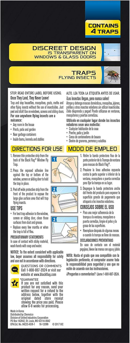 Black Flag Window Fly Trap, Transparent Glue Traps 4 Count