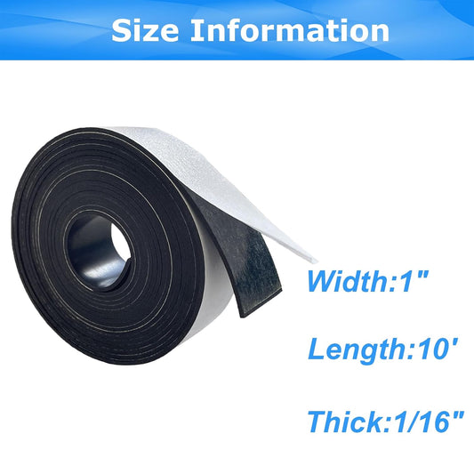 Adhesive Rubber Strips 1/16 (.062)" Thick X 1" Wide X 10'Long, Solid Rubber Strip with Adhesive for DIY Gaskets Crafts Pads Sealing Abrasion Supports Flooring Protection Warehouse