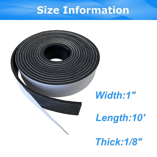 Adhesive Rubber Strips 1/8 (.125)" Thick X 1" Wide X 10'Long, Solid Rubber Strip with Adhesive for DIY Gaskets Crafts Pads Sealing Abrasion Supports Flooring Protection Warehouse