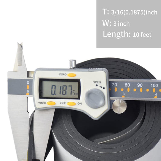 DOBTIM Neoprene Rubber Strips Self Adhesive 3/16 (.187)" Thick X 3" Wide X 10'Long, Solid Rubber Sheets, Rolls & Strips for Gaskets DIY Material, Supports, Leveling, Sealing, Bumpers, Abrasion Black