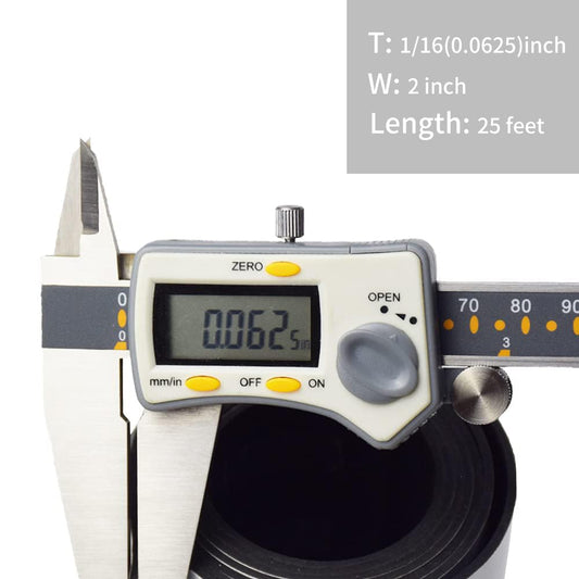 Solid Rubber Sheet, Rolls, Strips 1/16 (.062)" Thick X 2" Wide X 10'Long, Solid Rubber Rolls for Warehouse Anti-Slip, Flooring, Abrasion