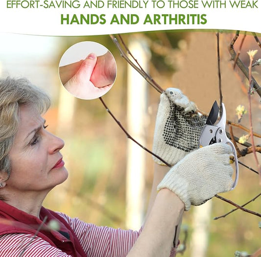 BUGUI 8" Ratchet Pruning Shears, 5 Times Cutting Power Than Normal Garden Scissors, Labor-Saving Design for Arthritis Weak Hands