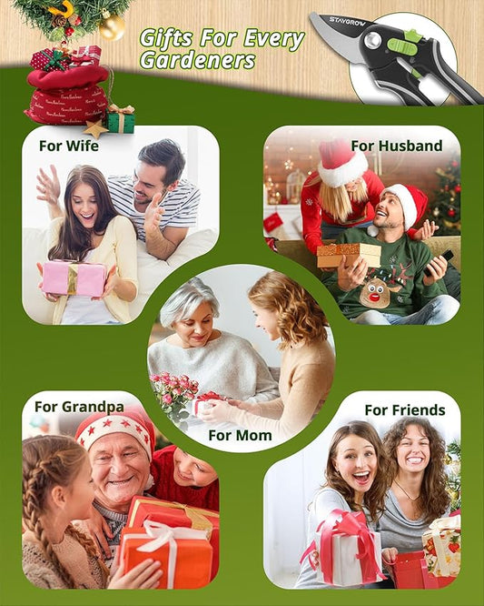 Pruning Shears for Gardening - 8.5" SK5 Garden Shears Cuts 10000+ Times Staying Sharp - Garden Scissors with One-handed Unlocking & Adjustable Handle- Garden Clippers Gardening Tools for Men Women