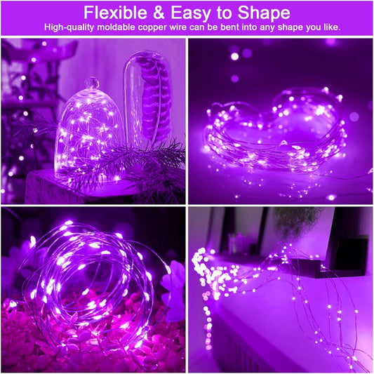 Solar Fairy Lights Purple Outdoor Waterproof,16.4ft 50LED Solar String Lights Purple for Outside 8 Modes 2 Packs for Halloween Patio Backyard Garden Deorations Purple, CS-SL-5M