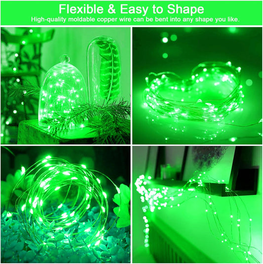 Solar Fairy Lights Green Outdoor Waterproof,16.4ft 50LED Solar String Lights Green for Outside 8 Modes 2 Packs for Patio Backyard Garden Deorations Green