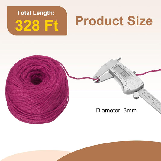 uxcell 328 Feet Natural Jute Twine String,3mm Thin Garden Twine Rope Colored Plant String Cord for DIY Art Crafts Gift Wrapping Decoration Packing Gardening Plant Hanger,Rose Red