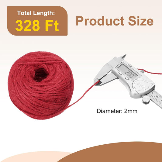 uxcell 328 Feet Natural Jute Twine String,2mm Thin Garden Twine Rope Colored Plant String Cord for DIY Art Crafts Gift Wrapping Decoration Packing Gardening Plant Hanger,Red