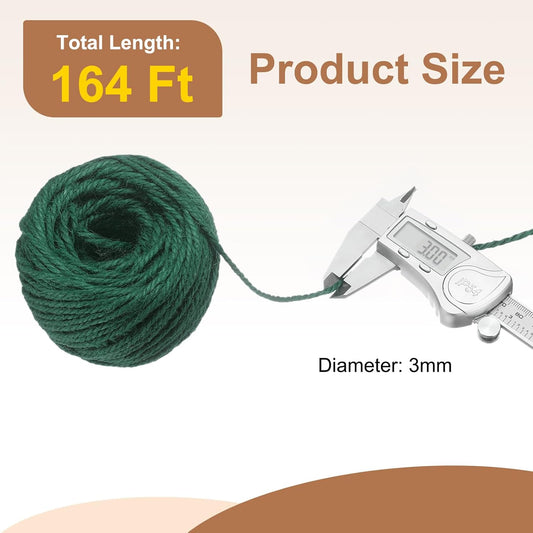 uxcell 164 Feet Natural Jute Twine String,3mm Thin Garden Twine Rope Colored Plant String Cord for DIY Art Crafts Gift Wrapping Decoration Packing Gardening Plant Hanger,Dark Green
