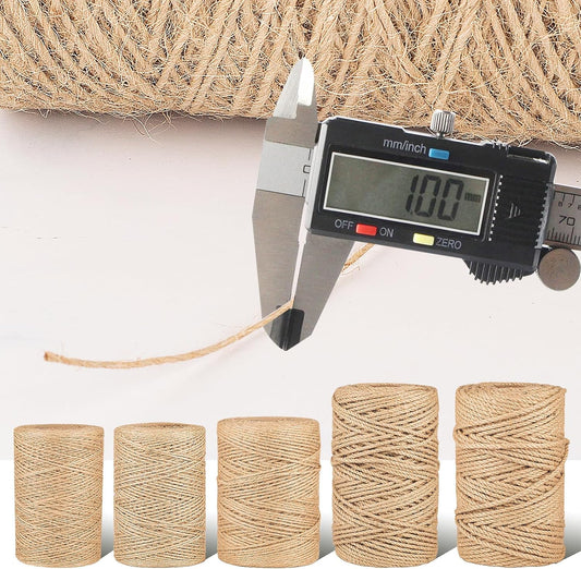 3mm 328 Feet Natural Jute Twine, for Crafts Gift, Craft Projects, Wrapping, Bundling, Packing, Holiday Packaging Twine, Gardening and More, Jute Rope to Use Around The House and Garden