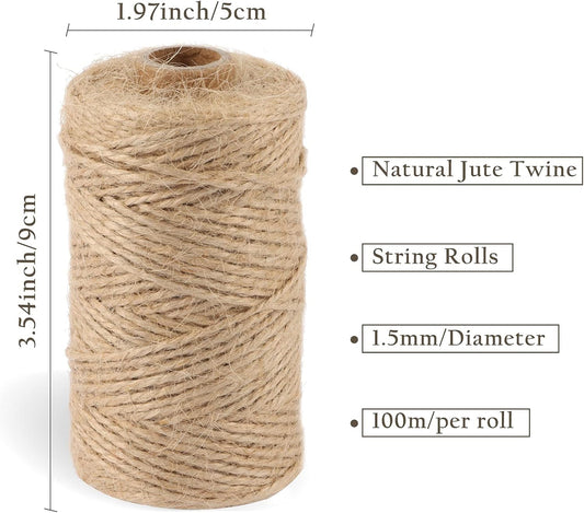 Natural Jute Twine Rope (1.5mm/2mm/3mm/6mm) Durable String for Handmde Crafts,Gardening Applications,Home Gardening,Cat Scratching Post,Gift Packaging... (1.5mm*328ft)