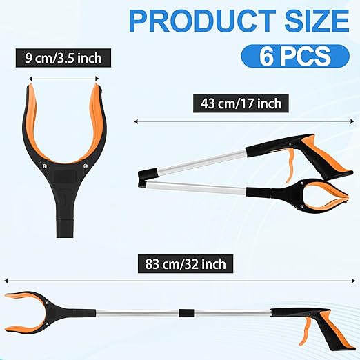 6 Pack 32 Inch Commercial Trash Grabber for Elderly Assist, Heavy Duty Lightweight Reacher with Ergonomic Handle & Non-Slip Grip, Multi-Use Outdoor Home Garden Cleanup Mobility Aid Tool