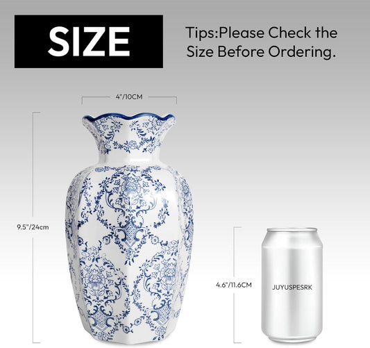 Chinoiserie Vase,Blue and White Vase,Vintage Ceramic Vases,Flower Vase for Centerpiece,Chinese Cute Vases for Living Room, Office,Home Decor (Blue White, Large)