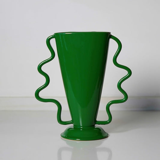 Wild Works Green Rotary Vase Medieval Flower Vessel Living Room Entrance Personalized Simple Wabi Sabi Decorative Ornament Ceramic Ornament