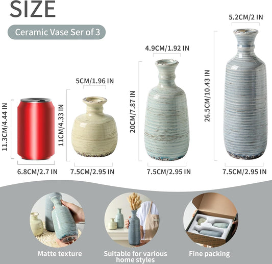 Ceramic Vase Set of 3, Rustic Neutral Vases Home Decor Farmhouse Decorative Flower Vase Modern Boho Pampass Vases for Table Mantel Entryway Shelf Living Room Kitchen Bathroom - Multicolor