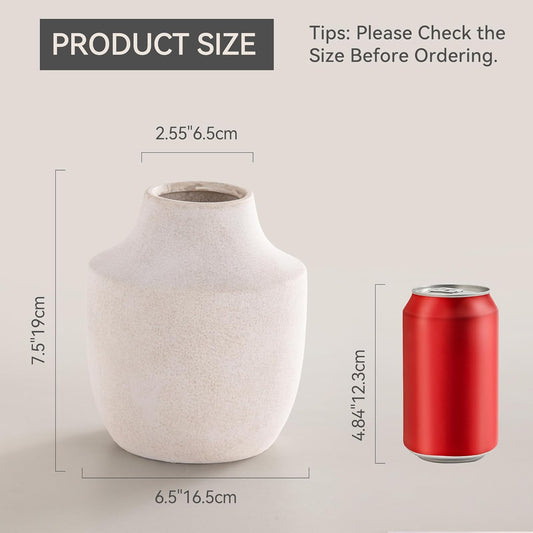 Mitt&Ditt Ceramic Flower Vase, 7.5 inch Off-White Farmhouse Rustic Vase, Handcrafted Weathered Pottery Vases, Small Flower Terracotta Vases for Home Decor, Living Room, Table, Shelf