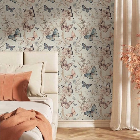 Wonderland Boho Butterfly Flowers Peel and Stick Wallpaper Self Adhesive Removable Easy Peel Off Stick on Wall Paper for Bedroom Cabinet Renter Friendly