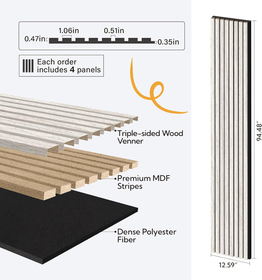Olanglab Wood Slat Wall Panels 4 Pack, Wooden Acoustic Wall Panels, 94.5"x12.6" Each 3D Wall Panels for Interior Wall Decor (White-Extendo Trio)