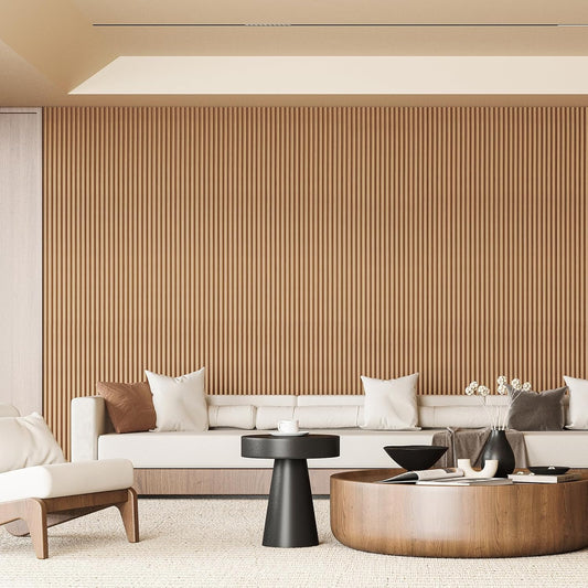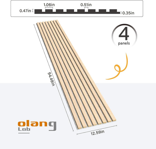 Olanglab Wood Slat Wall Panels 4 Pack, Wooden Acoustic Wall Panels, 94.5"x12.6" Each 3D Wall Panels for Interior Wall Decor (Light Oak-Extendo Trio)
