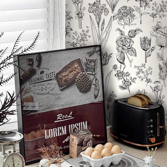 Dimoon 236"x17.3" Floral Peel and Stick Wallpaper White Contact Paper Waterproof Black Lines Wallpaper Vintage Flower Thicken Plant Self Adhesive Removable Wall Covering Shelf Liner Decal Vinyl Roll