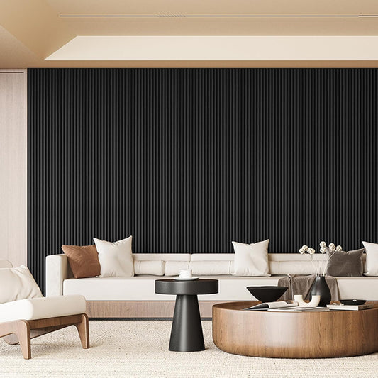 Olanglab Wood Slat Wall Panels 4 Pack, Wooden Acoustic Wall Panels, 94.5"x12.6" Each 3D Wall Panels for Interior Wall Decor (Black-Extendo Trio)