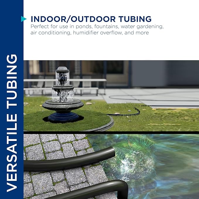 - VERSATILE INDOOR/OUTDOOR TUBING: Perfect for use in ponds, fountains, water gardening, air conditioning, humidifier overflow, and more domestic and industrial uses
