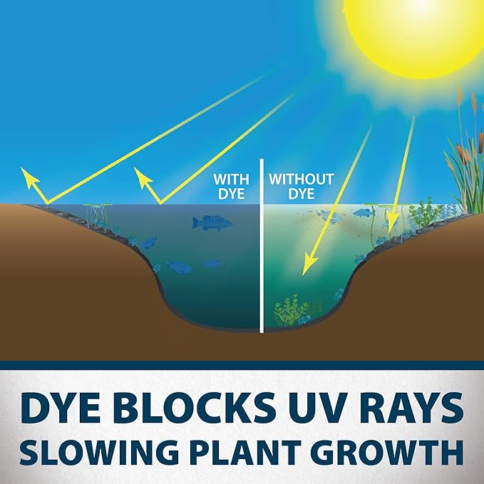 - Black DyeMond pond water dye creates a mirrored surface to reflect surroundings and boost aesthetic appeal