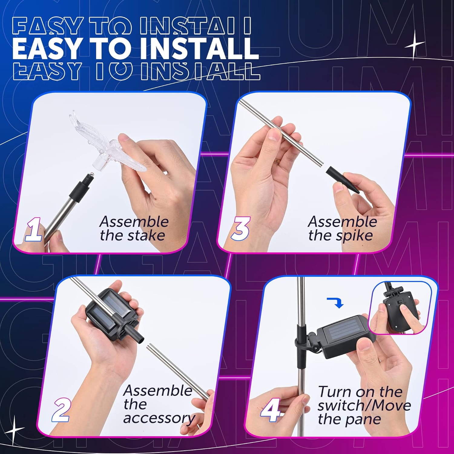 - 【Easy to Install】Color-changing stake lights install easily: remove the protective film, unfold the solar panel, and stake in sunny garden areas. No tools required.