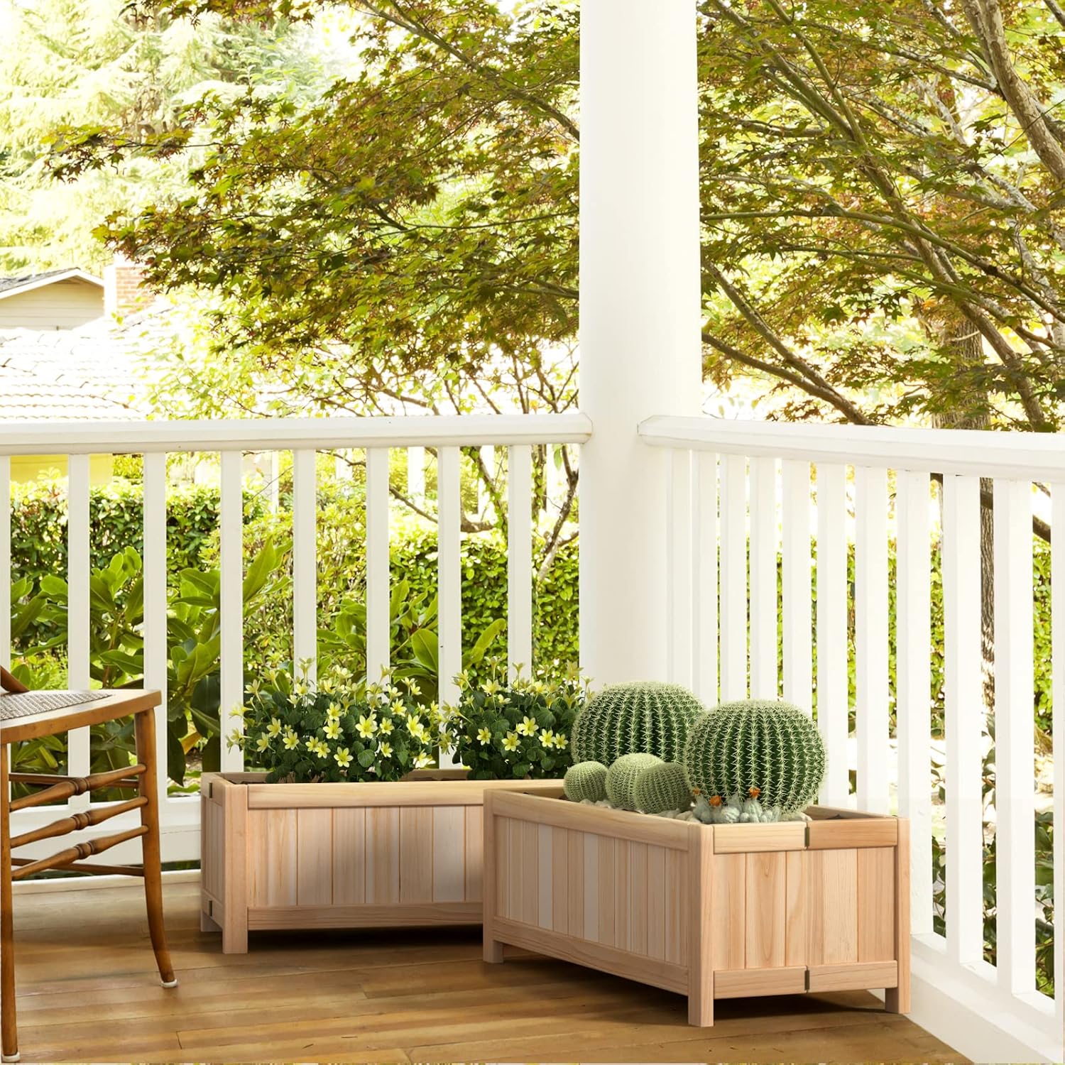 - 【Wood Slats for Plant Ventilation】The planter box is constructed of several wood slats on four sides. There is a slight gap between the slats for plant ventilation.