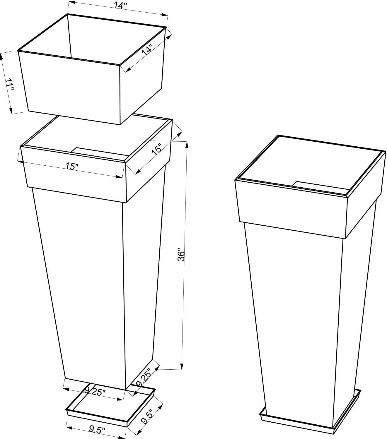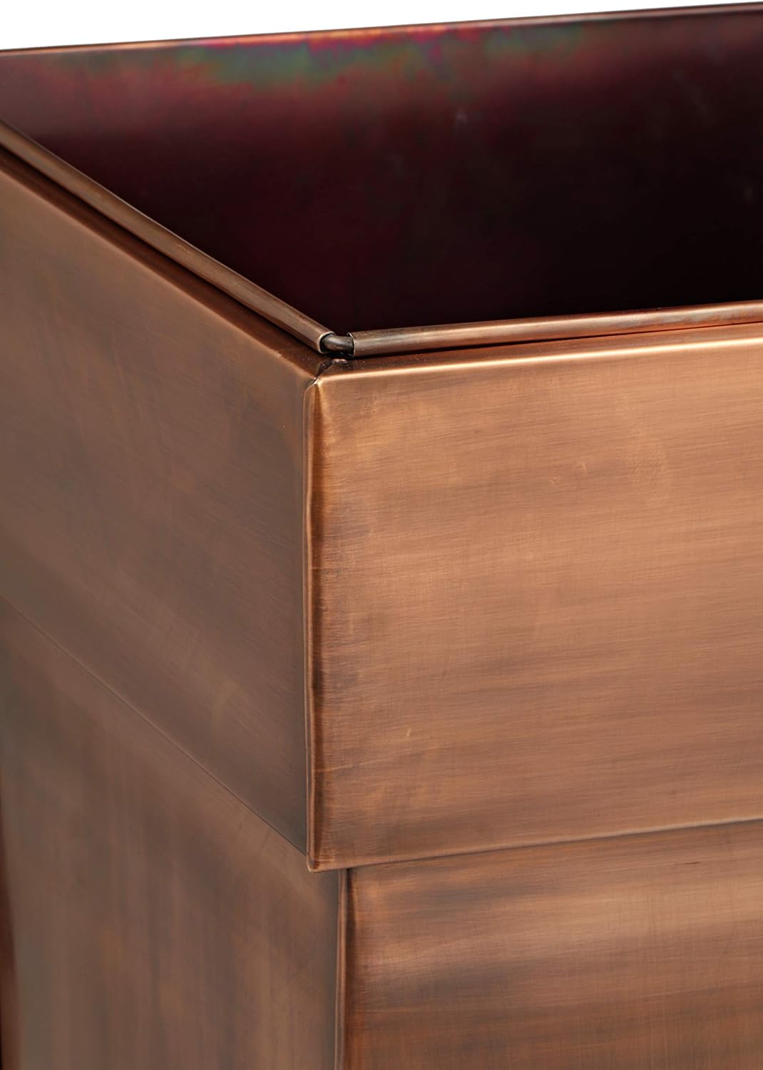 - Eye-Pleasing Planter: This H Potter stainless steel planter with an antique copper finish is a stunning pot for filling with any greenery of your choice. Tall and vertical its perfect for displaying indoors or outdoors. Measurements are approximately 15” at widest top opening, 36.5” high and base of planter is 9.25” square. Planter insert 14"sq at top opening, 11"sq at bottom. Plants are not included.
