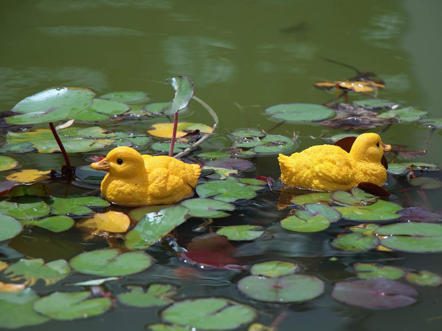 Floating Resin Duck Figurine Pond Décor Garden Lawn Patio Outdoor Statue Yellow (Set of 2)