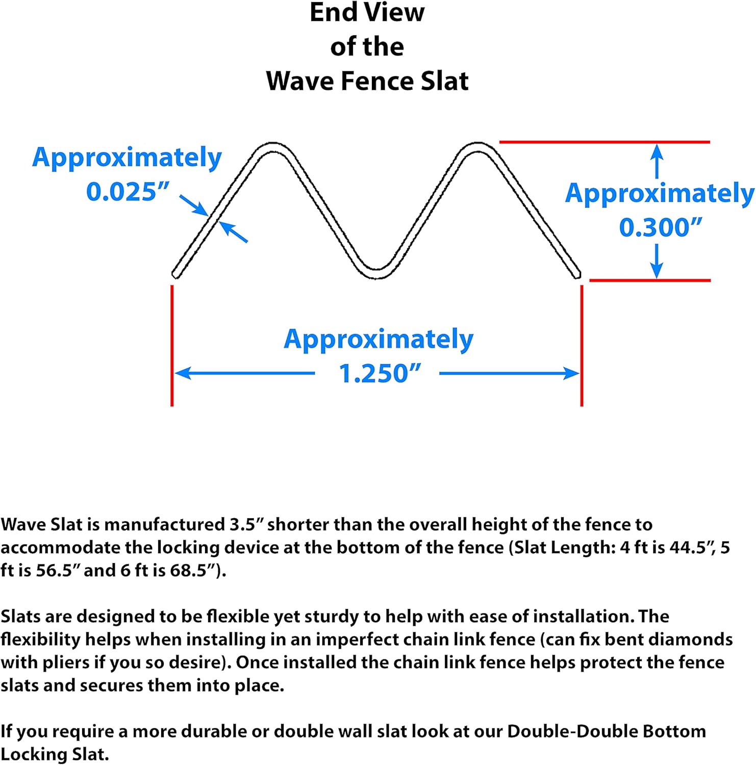 Wave Slat (9 Colors) Single Wall Bottom Locking Privacy Slat for 4', 5', 6', 7' and 8' Chain Link Fence (5 ft, Royal Blue)